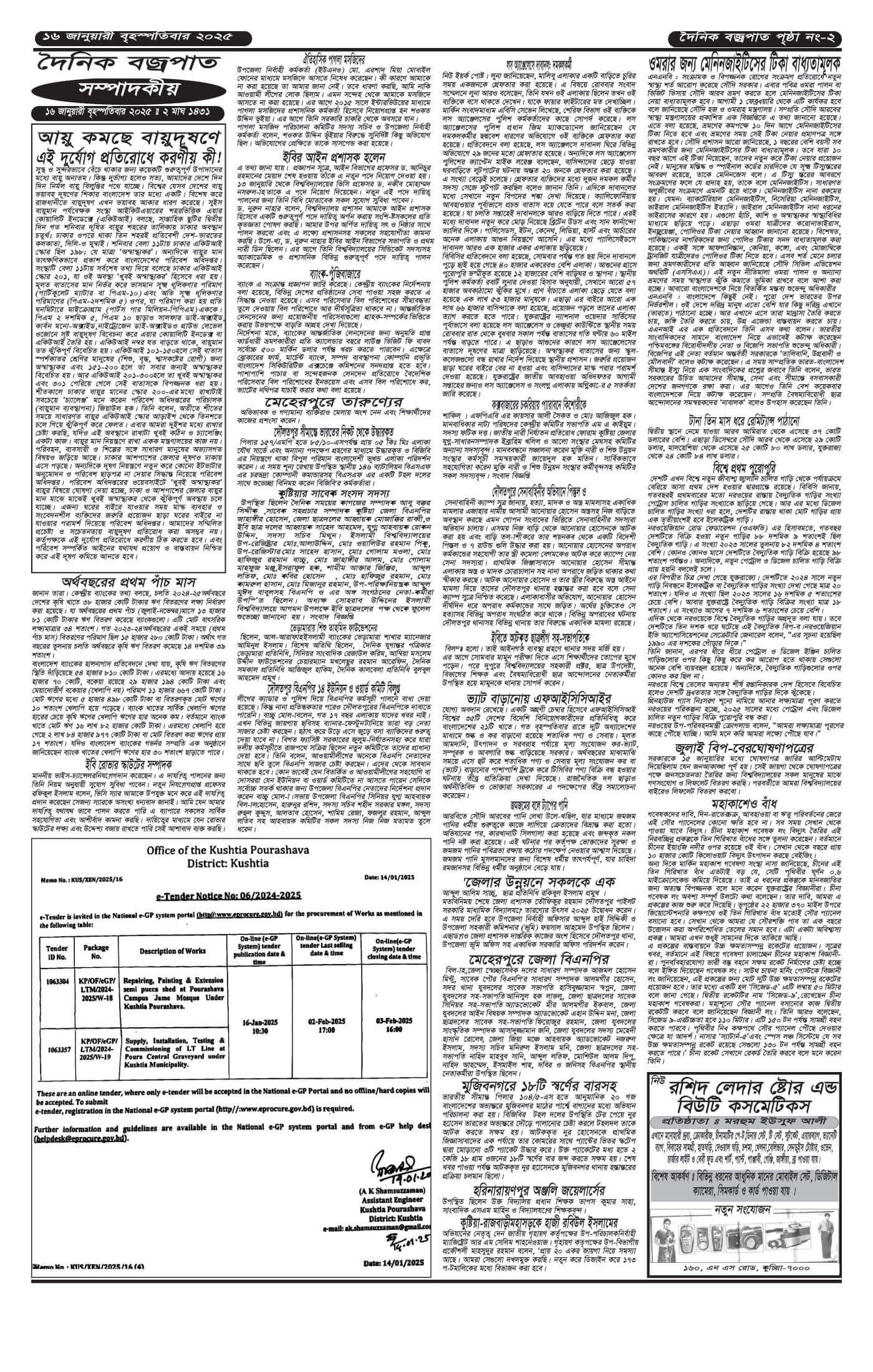 বৃহস্পতিবারের ই-পেপার তারিখঃ ১৬/০১/২০২৫ইং