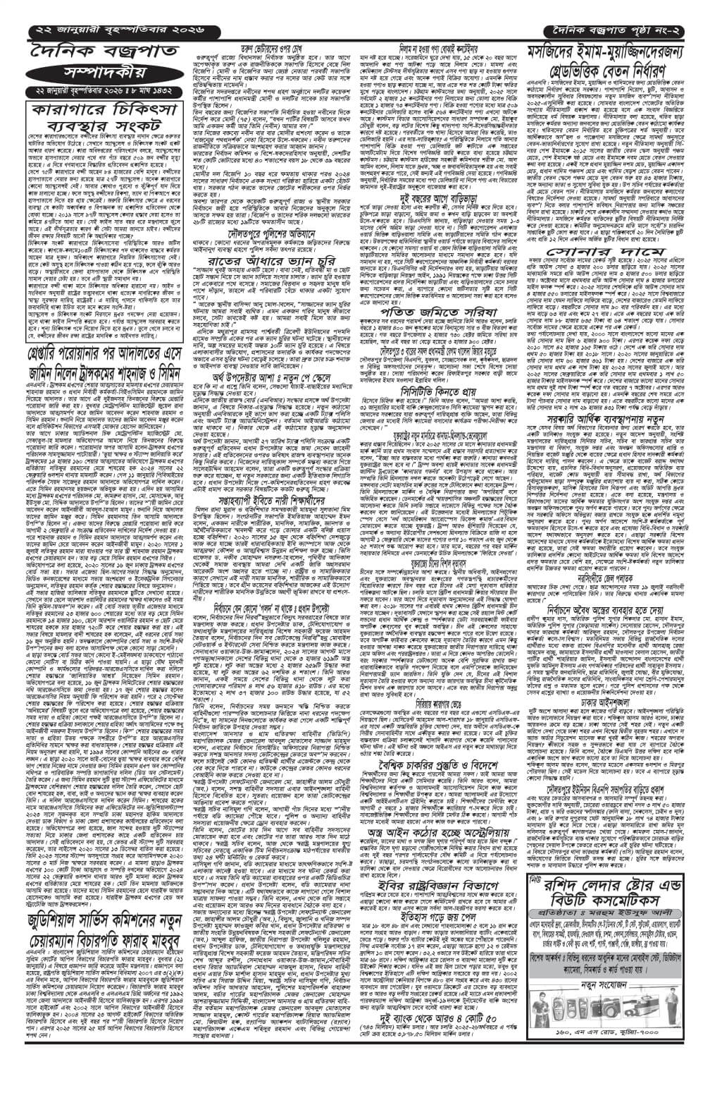 বৃহস্পতিবারের ই-পেপার তারিখঃ ২২/০১/২০২৬ইং