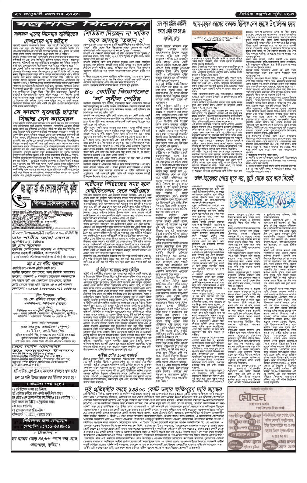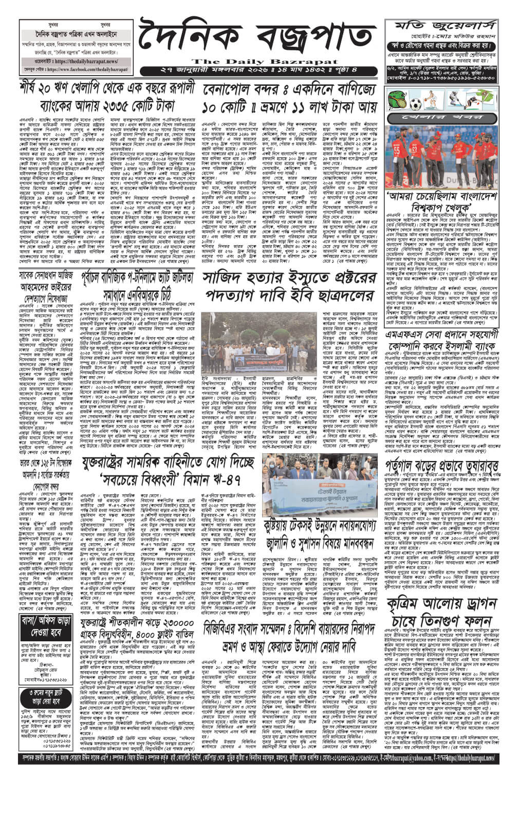 মঙ্গলবারের ই-পেপার তারিখঃ ২৭/০১/২০২৬ইং