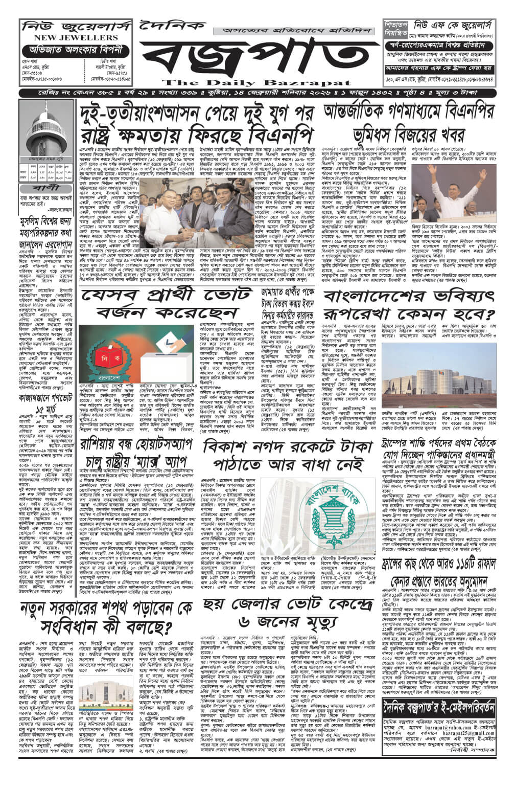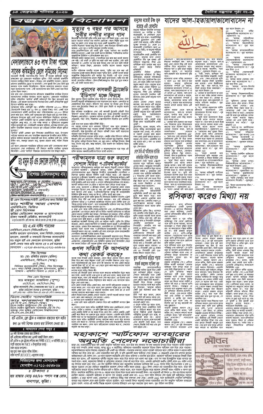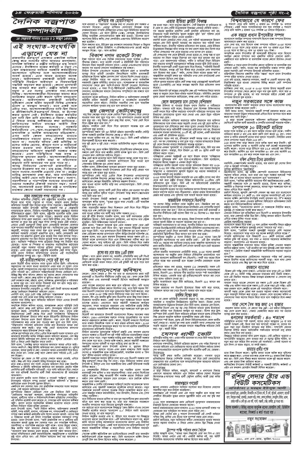 শনিবারের ই-পেপার তারিখঃ ১৪/০২/২০২৬ইং