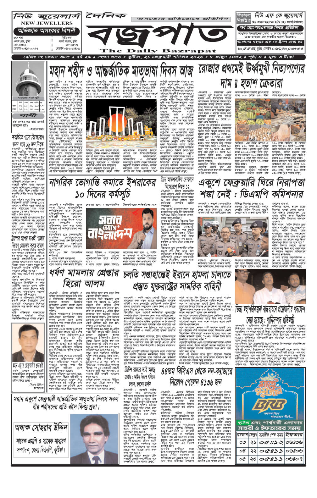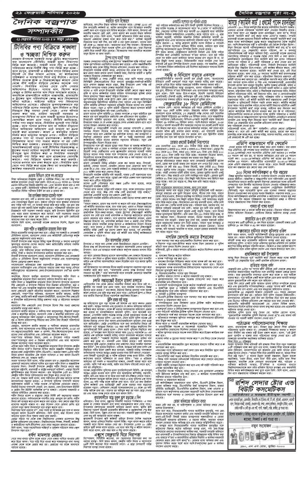 শনিবারের ই-পেপার তারিখঃ ২১/০২/২০২৬ইং