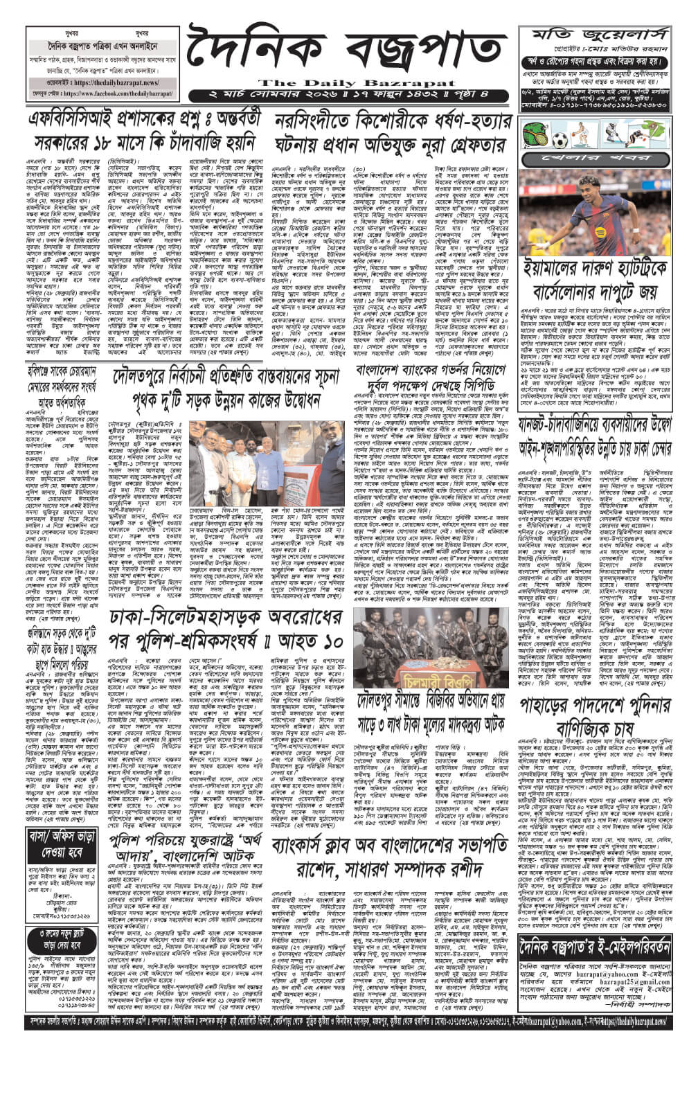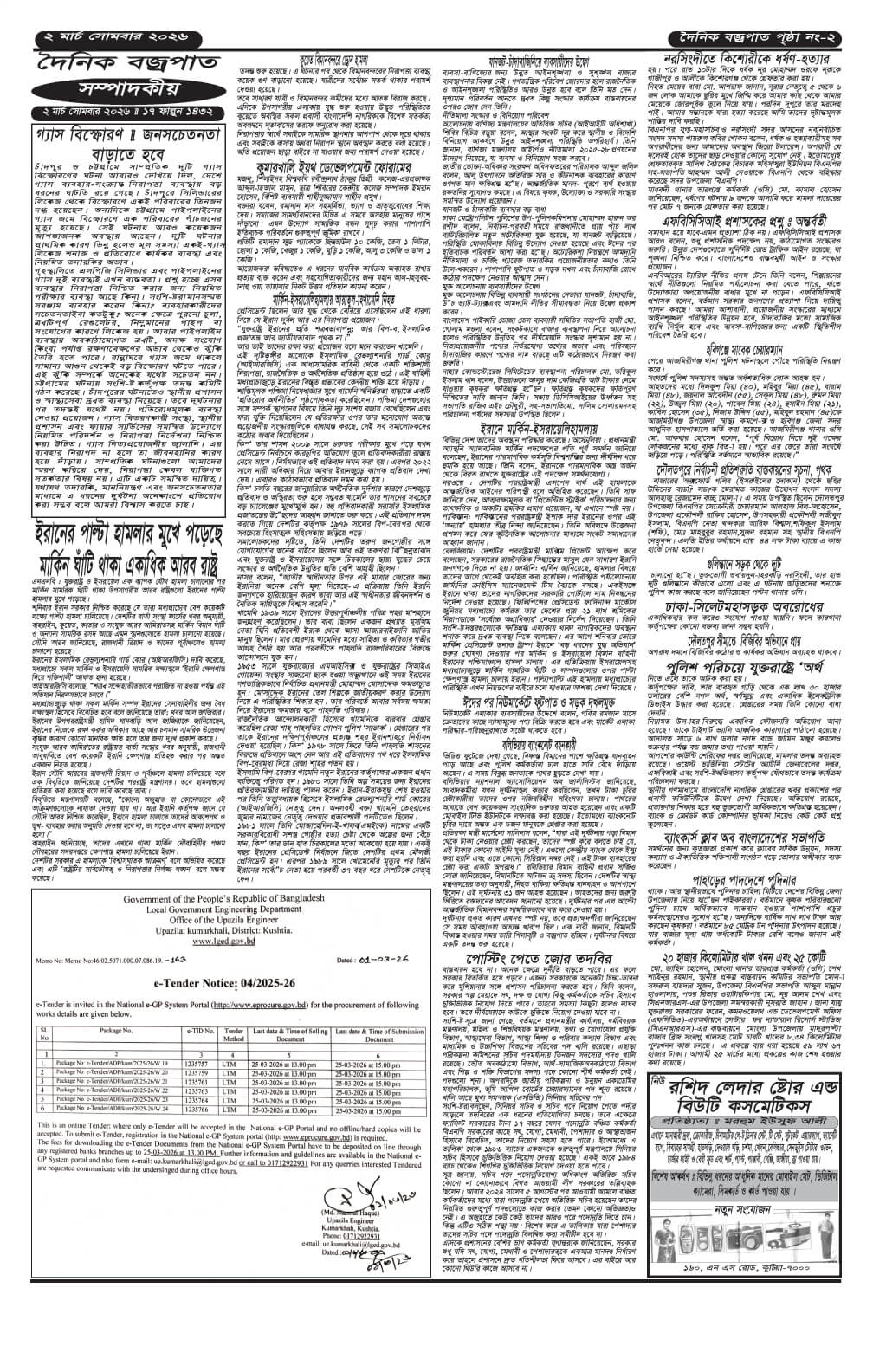সোমবারের ই-পেপার তারিখঃ ০২/০৩/২০২৬ইং