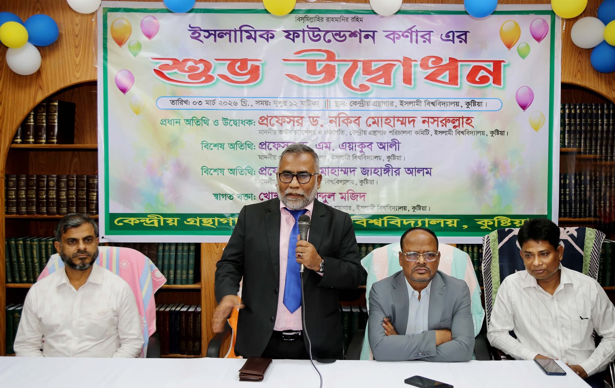 ইসলামী বিশ্ববিদ্যালয়ে (ইবি) ইসলামিক ফাউন্ডেশন কর্ণারের উদ্বোধন করা হয়েছে। মঙ্গলবার (৩ মার্চ) বেলা সাড়ে ১২টার দিকে বিশ্ববিদ্যালয়ের কেন্দ্রীয় গ্রন্থাগারে এ অনুষ্ঠান আয়োজন করে লাইব্রেরি কর্তৃপক্ষ।