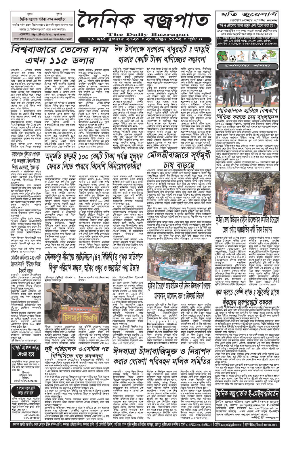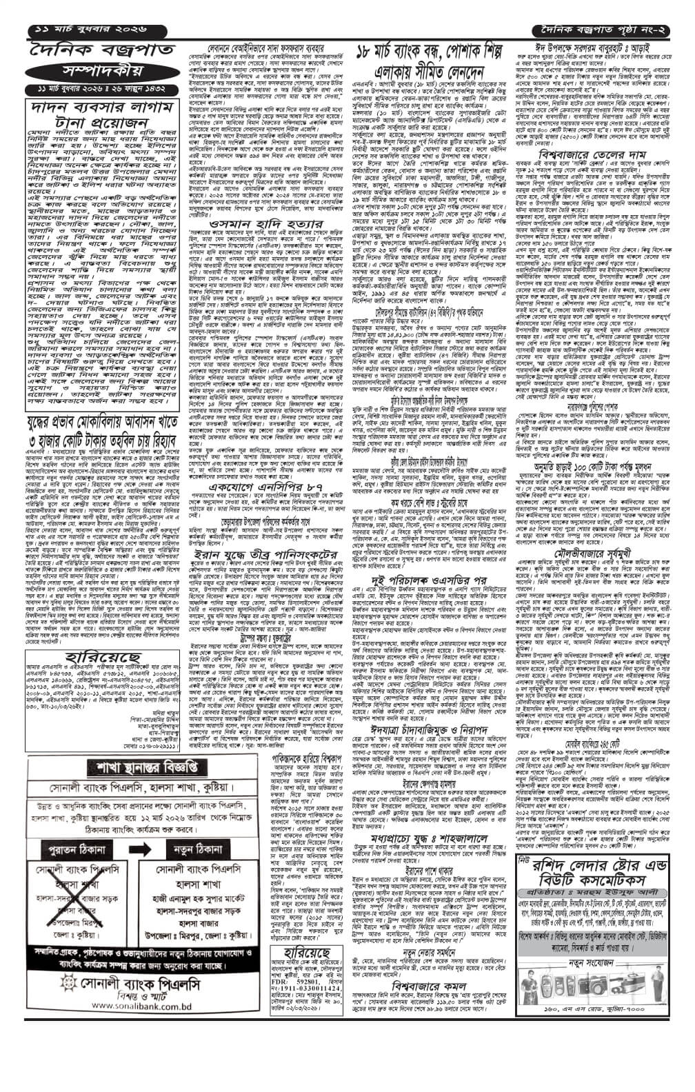 বুধবারের ই-পেপার তারিখঃ ১১/০৩/২০২৬ ইং