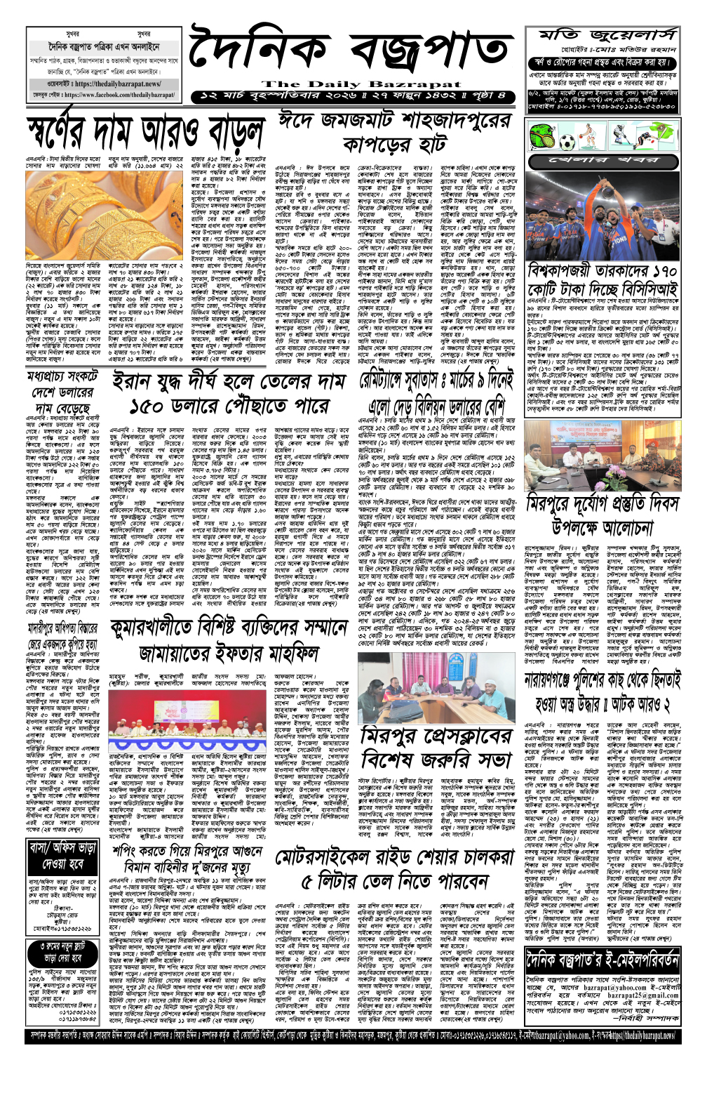 বৃহস্পতিবারের ই-পেপার তারিখঃ ১২/০৩/২০২৬ইং