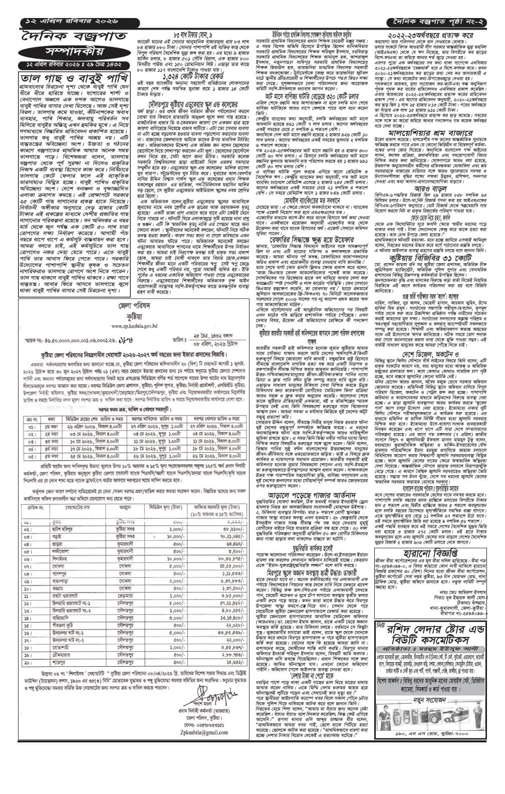 রবিবারের ই-পেপার তারিখঃ ১২/০৪/২০২৬ইং