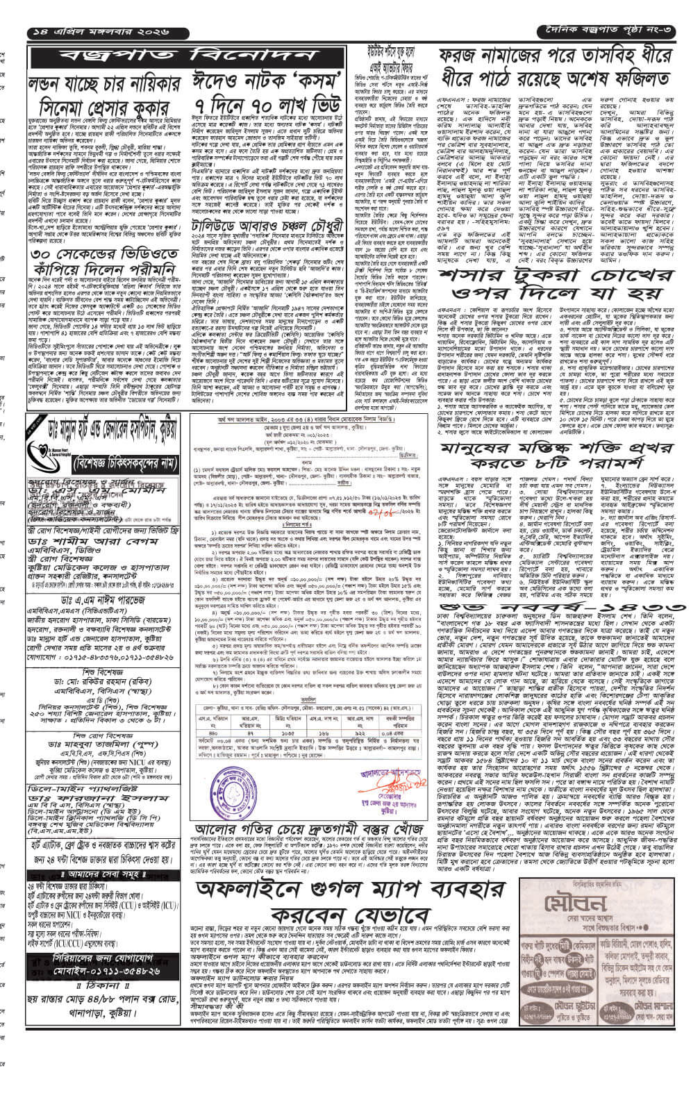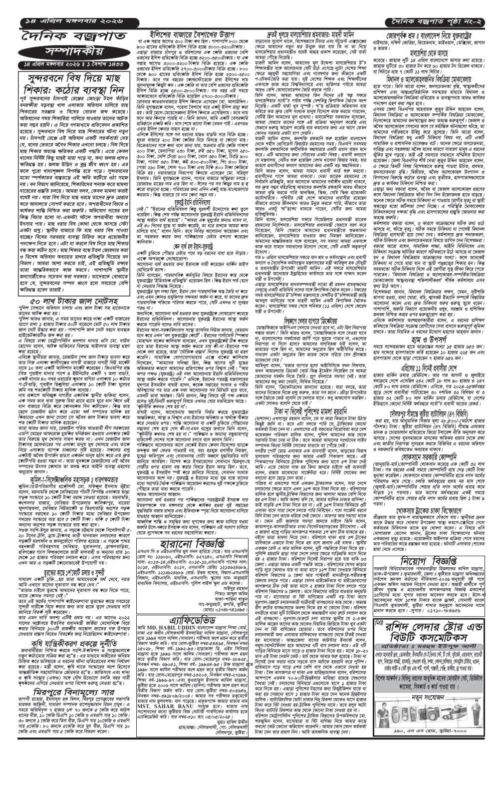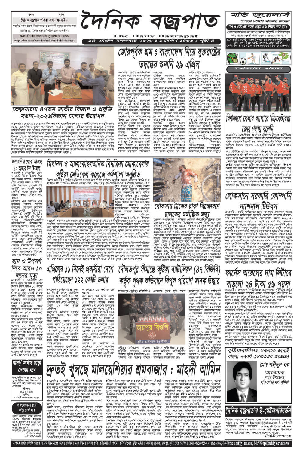বুধবারের ই-পেপার তারিখঃ ১৫/০৪/২০২৬ইং