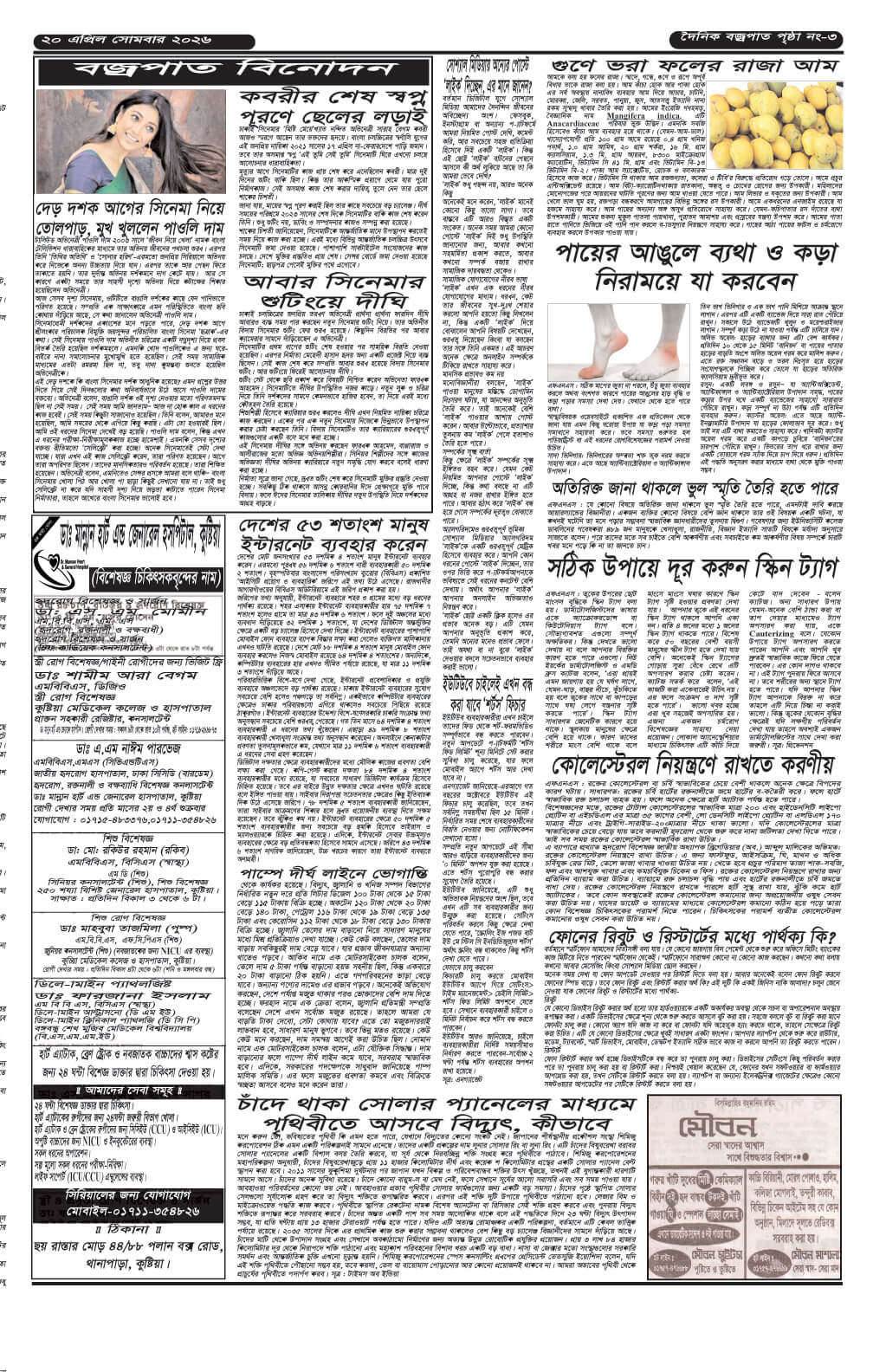 সোমবারের ই-পেপার তারিখঃ ২০/০৪/২০২৬ইং