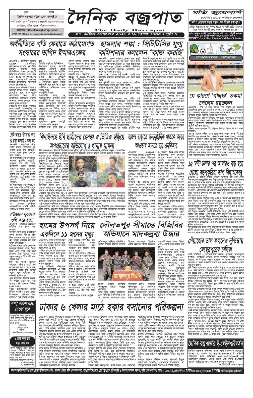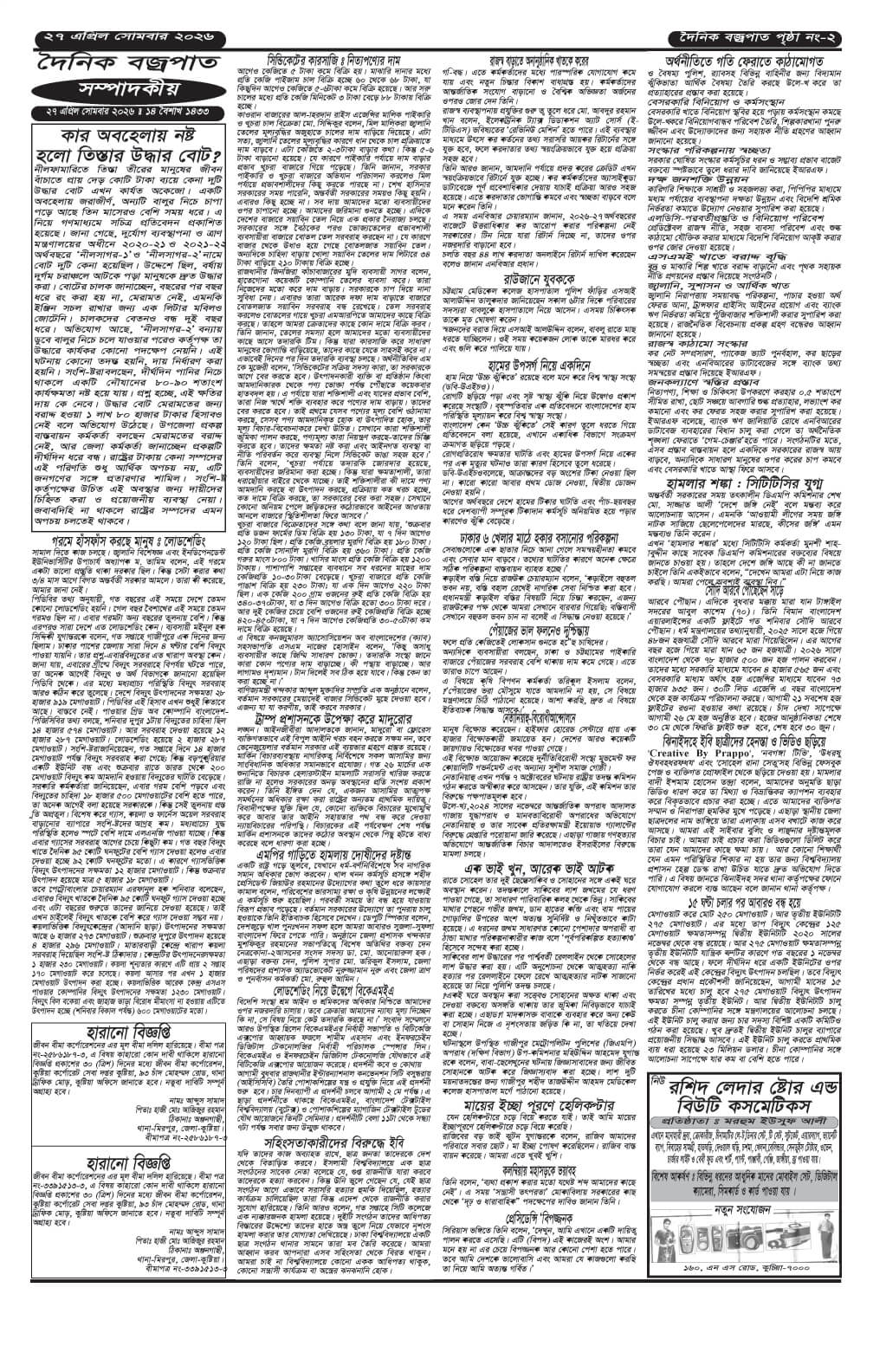 সোমবারের ই-পেপার তারিখঃ ২৭/০৪/২০২৬ইং